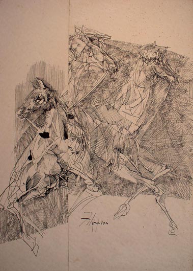 Gioco di cavalli / china su due carte applicate su masonite / 1958