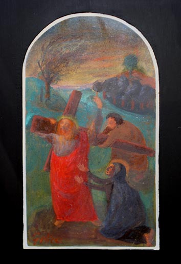 Cireneo aiuta Gesù a portare la croce / tempera su cartoncino / 1945 ca.