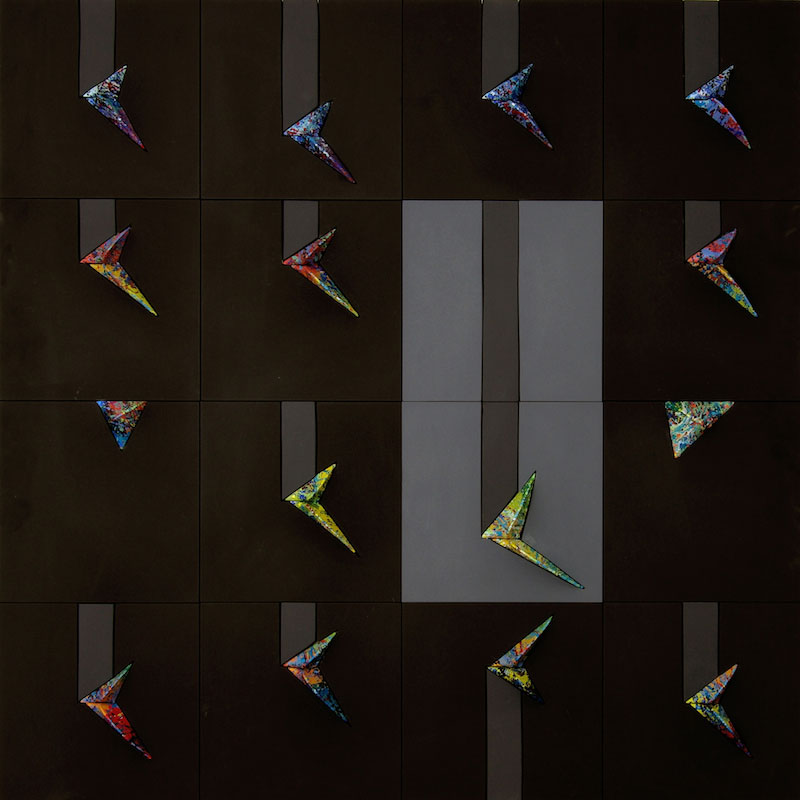 acrilici su tela estroflessa e legno