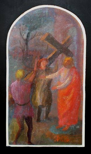 Cireneo porta la croce / tempera su cartoncino / 1945 ca.