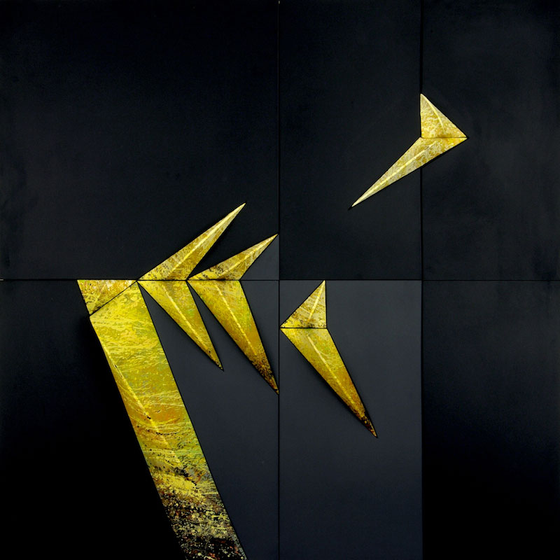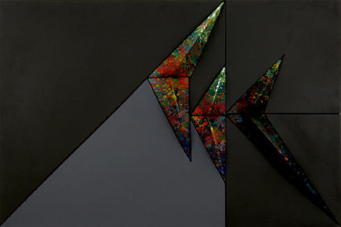 acrilici su tela estroflessa e legno